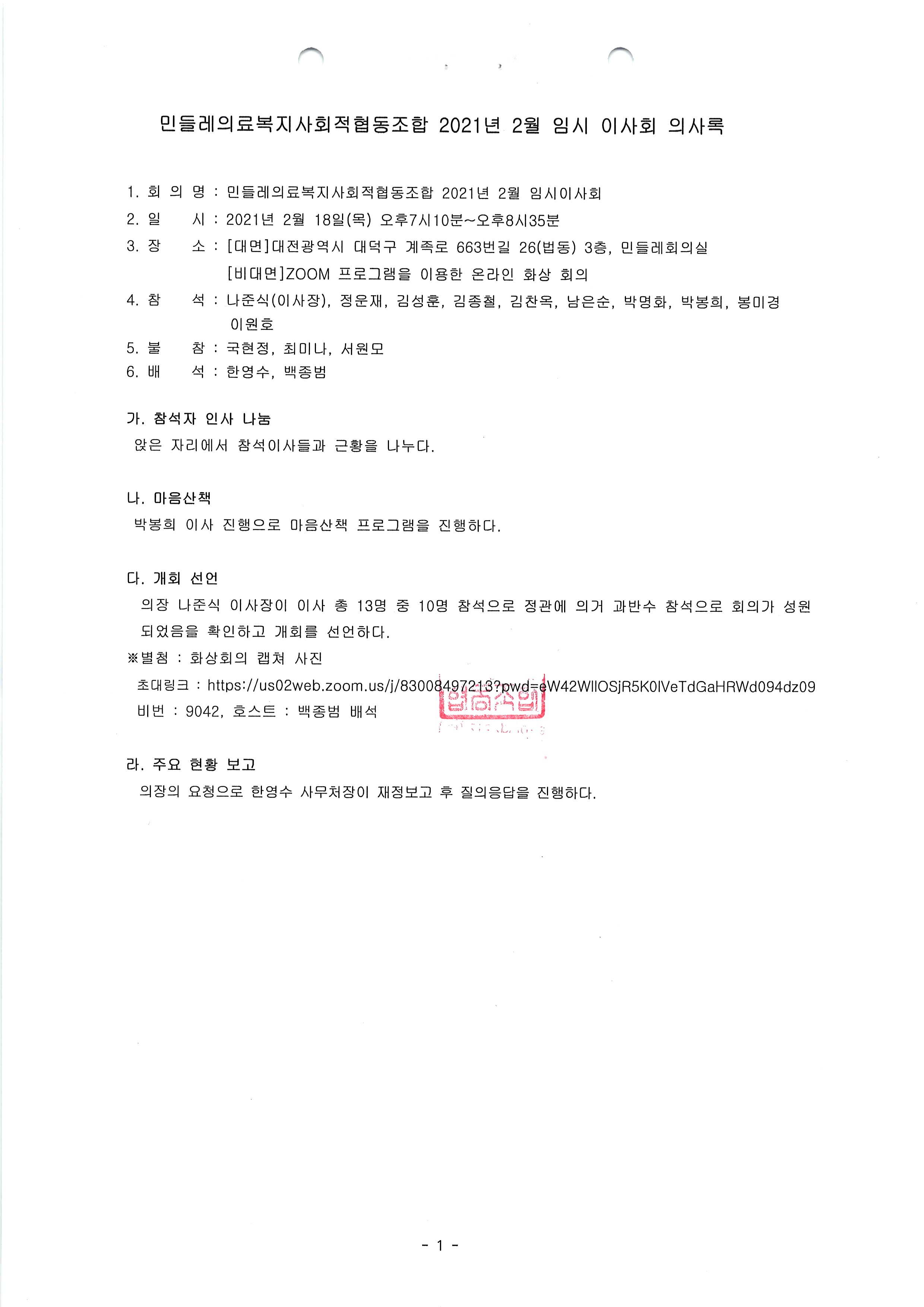 [2021-02] 임시이사회 결과보고