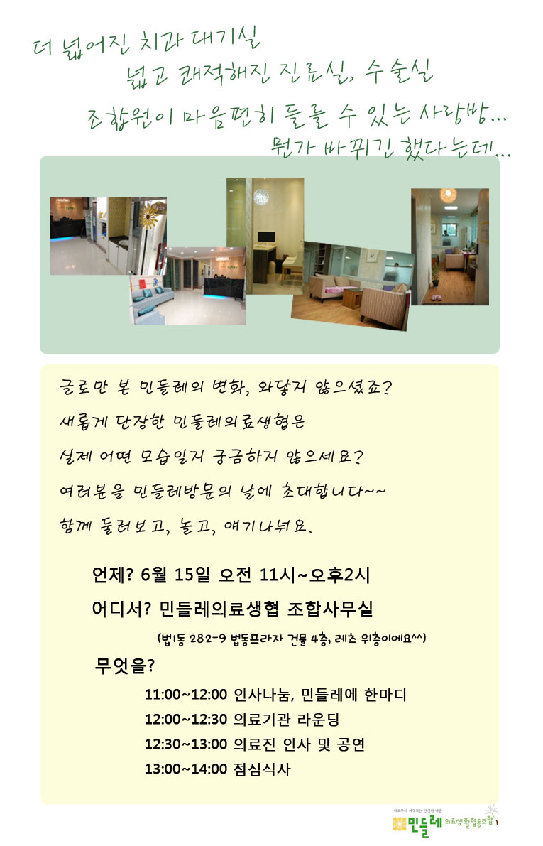 15일 민들레의료생협에 놀러오세요~~