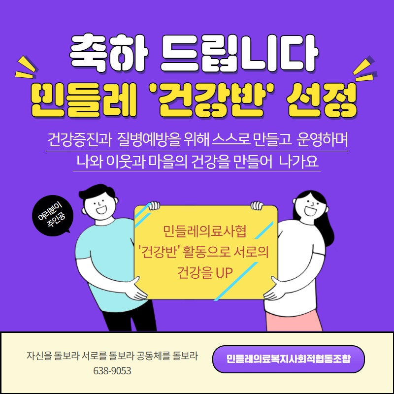 2021년 민들레의료복지사회적협동조합의 '건강반' 활동에 보여 주신 관심과 성원에 감사 드리며 선정된 '건강반'을