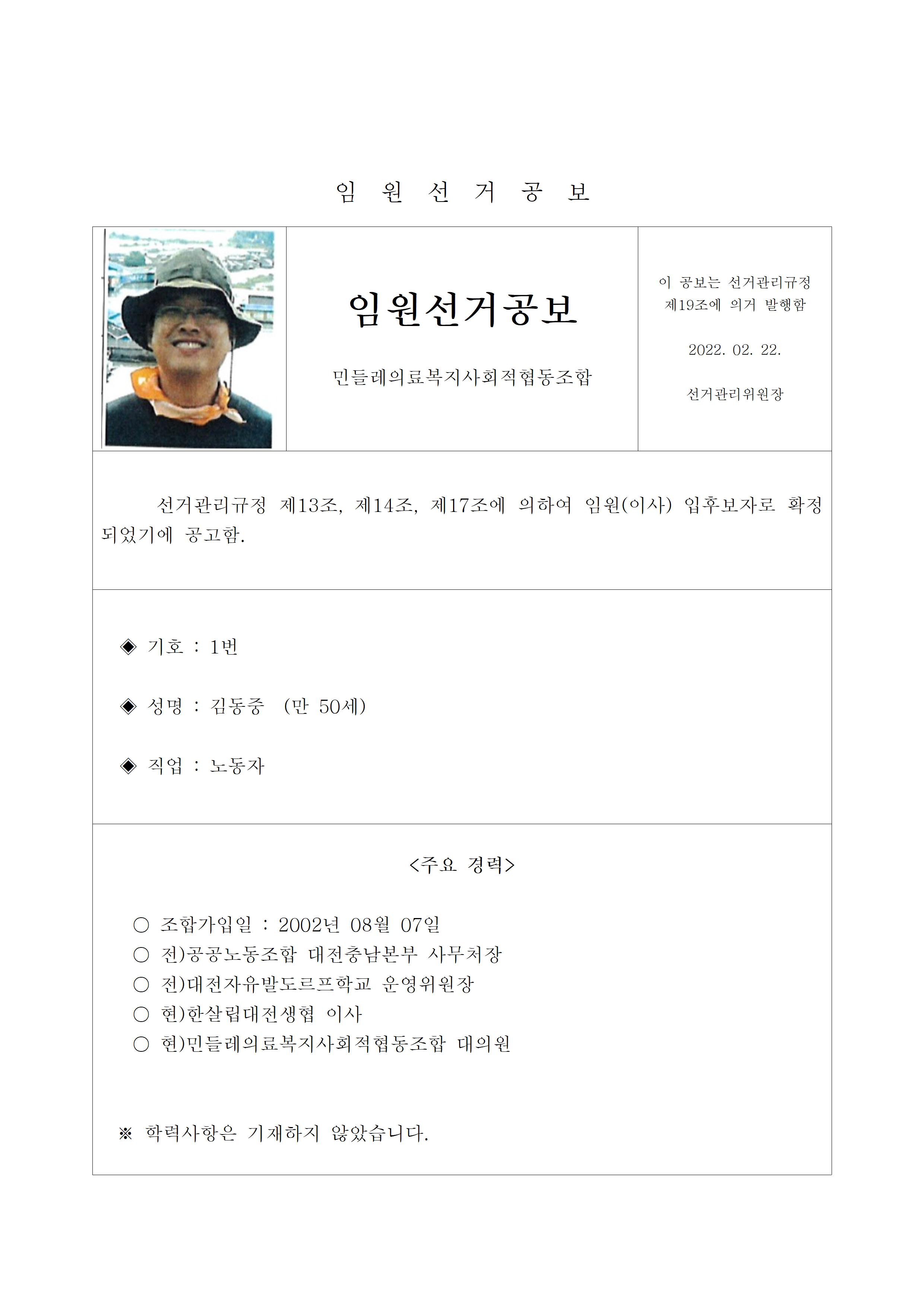 2022년 민들레의료사협 임원(이사, 감사)선거 공보